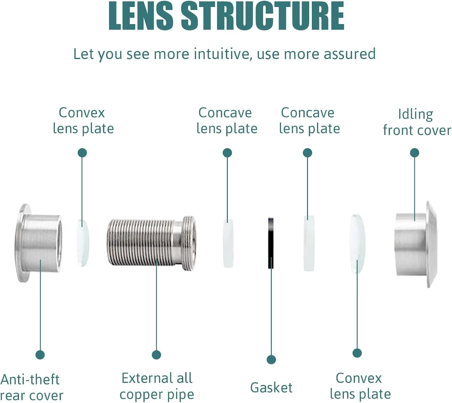 [APPLICATION]: The Door Viewer is maximising its outstanding strength and reliability. Although they are generally used for front door use, their design makes them suitable for wide angle lenses that allow residents to see who is on their doorstep without opening the door and secure their safety.