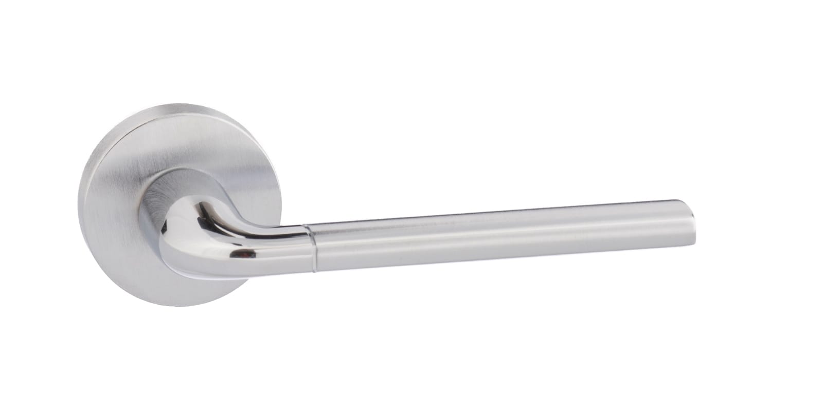 FMR158SCPC Forme Milly Lever Door Handle on Minimal Round Rose – Satin Chrome/Polished Chrome