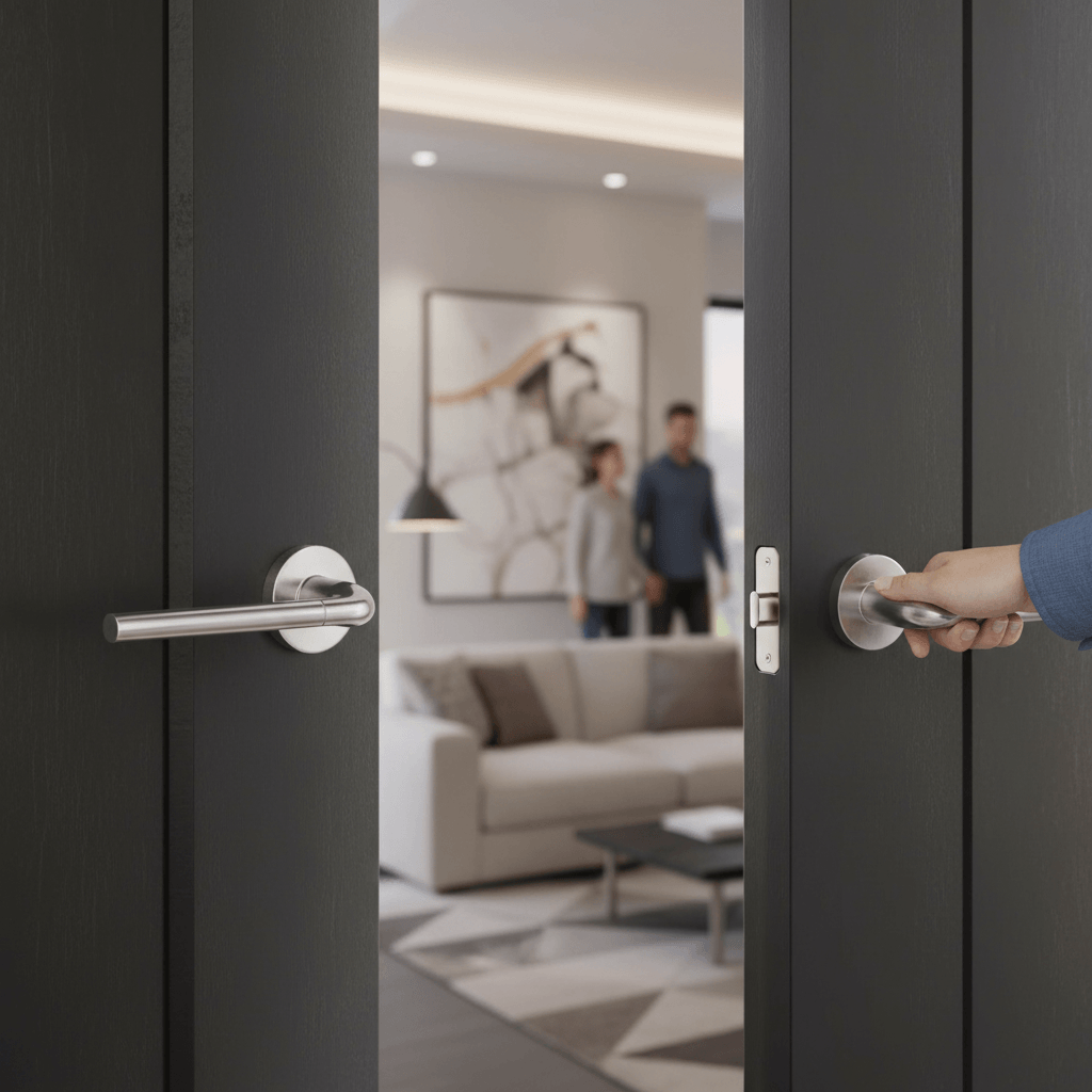 Be the first to review “FMR158SCPC Forme Milly Lever Door Handle on Minimal Round Rose – Satin Chrome/Polished Chrome” Cancel reply