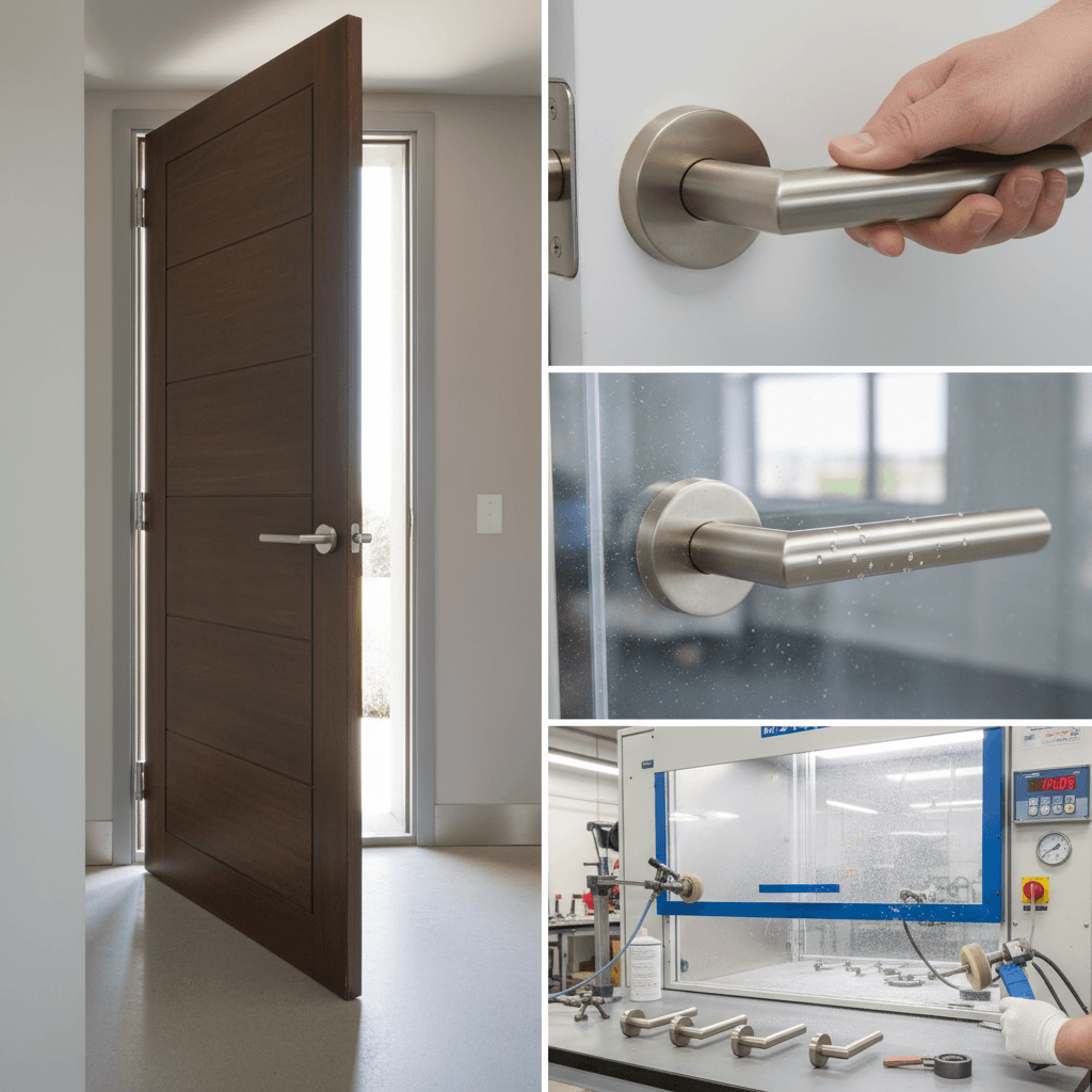 FMR236SN Forme Elle Lever Door Handle on Minimal Round Rose – Satin Nickel