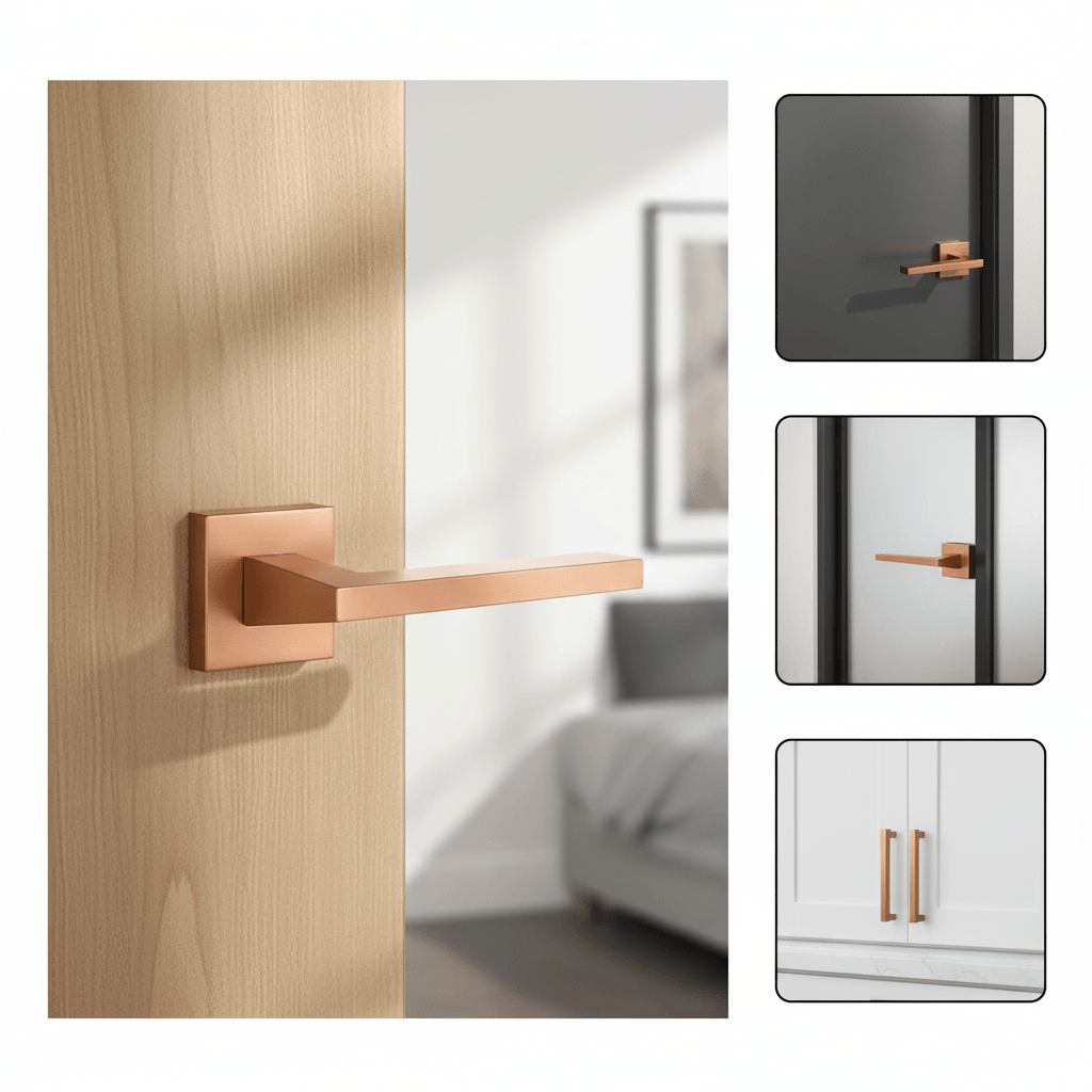 FMS136USC Forme Lorena Lever Door Handle on Minimal Square Rose – Urban Satin Copper