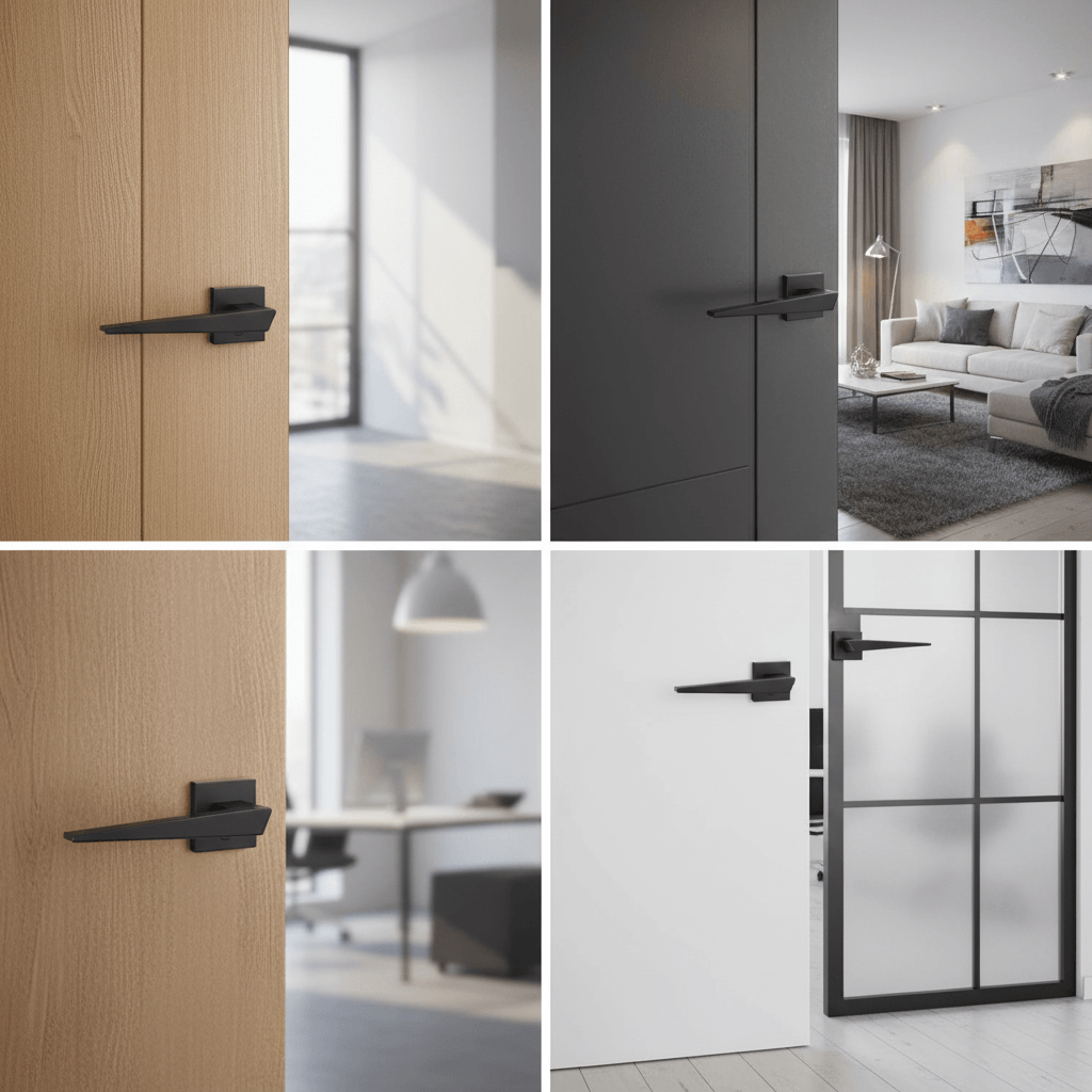 VersaLine Tobar Lever Door Handle on Long Rose – Matt Black Decorative Plate – Matt Black
