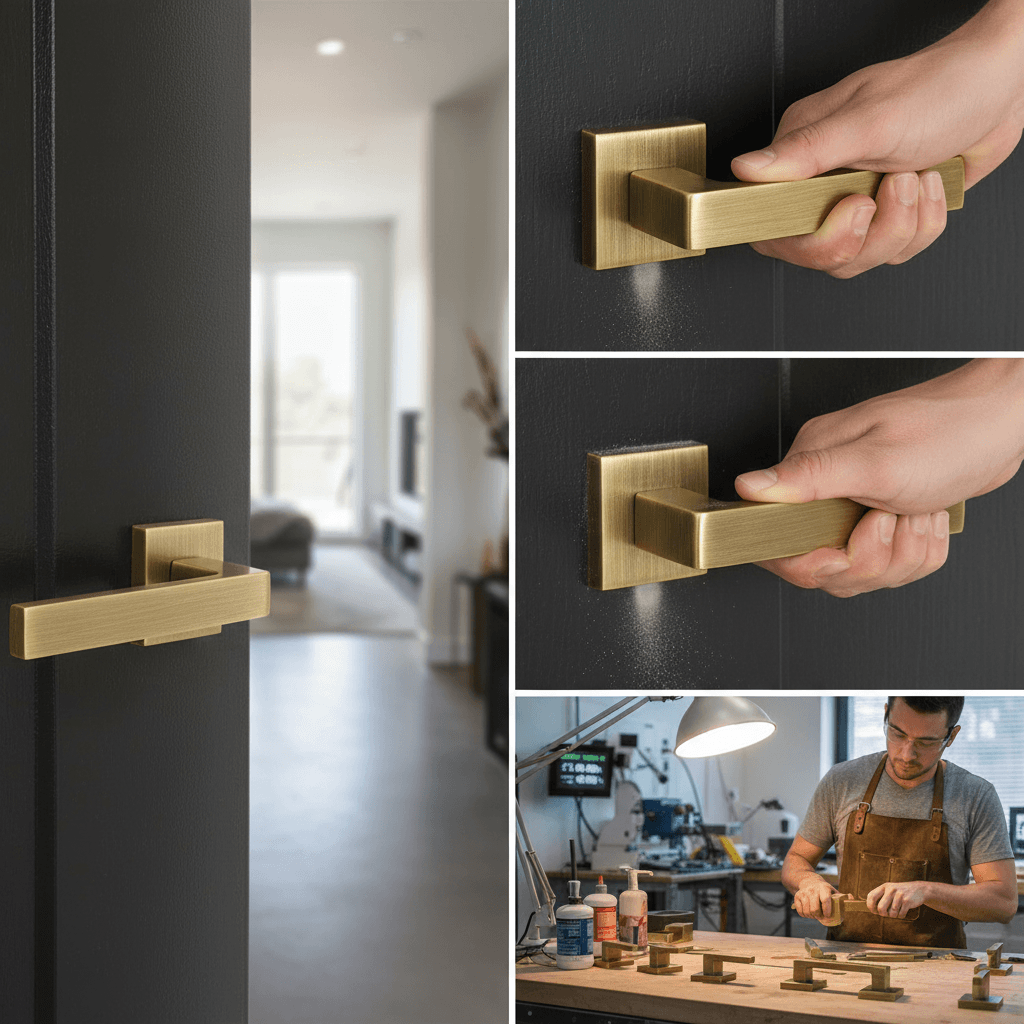 FMS254YB Forme Asti Lever Door Handle on Minimal Square Rose – Yester Bronze