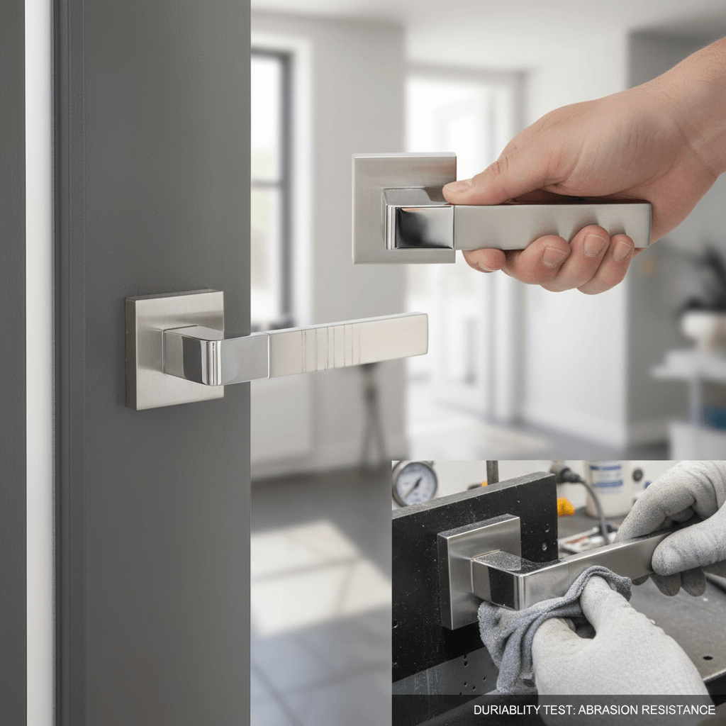 Be the first to review “FMS255SCPC Forme Asti Lever Door Handle on Minimal Square Rose – Satin Chrome/Polished Chrome” Cancel reply