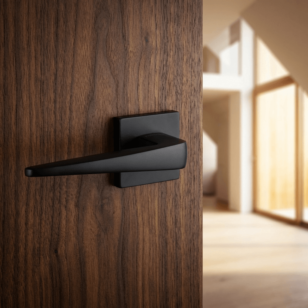 FMS272MB Forme Foglia Lever Door Handle on Minimal Square Rose – Matt Black