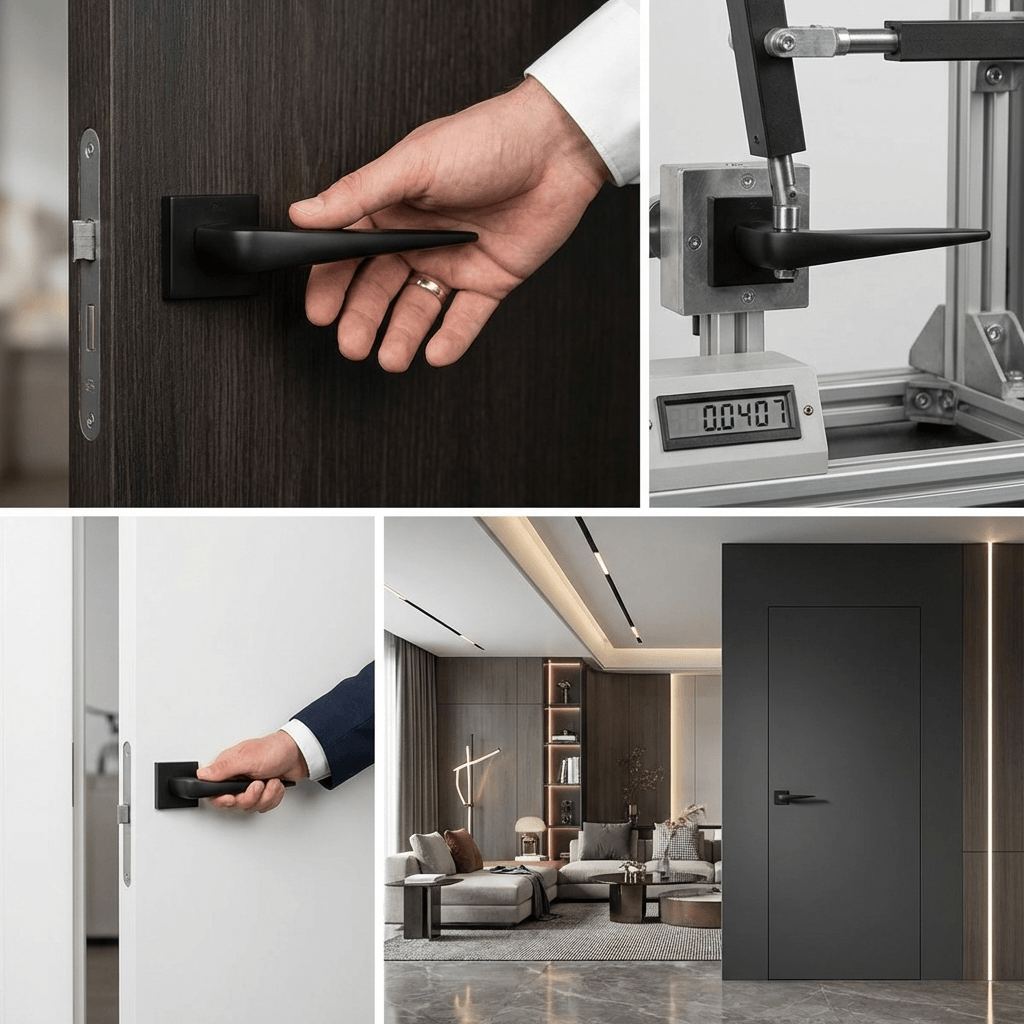 Be the first to review “FMS272MB Forme Foglia Lever Door Handle on Minimal Square Rose – Matt Black” Cancel reply