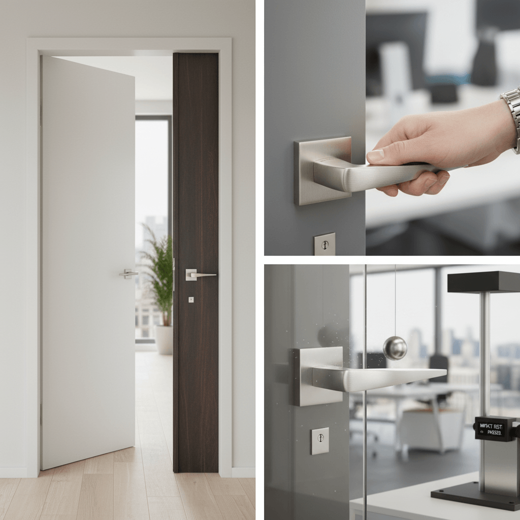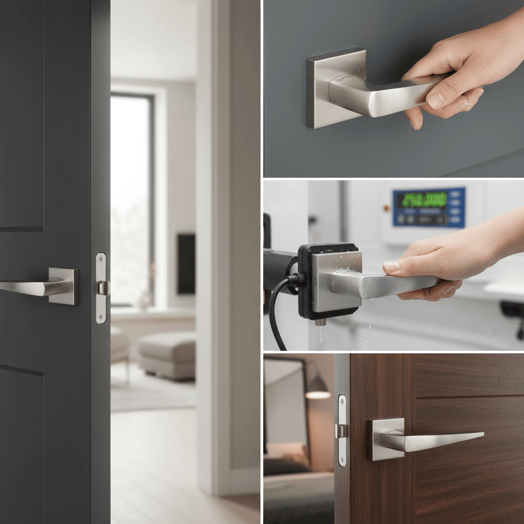 FMS272SC Forme Foglia Lever Door Handle on Minimal Square Rose – Satin Chrome