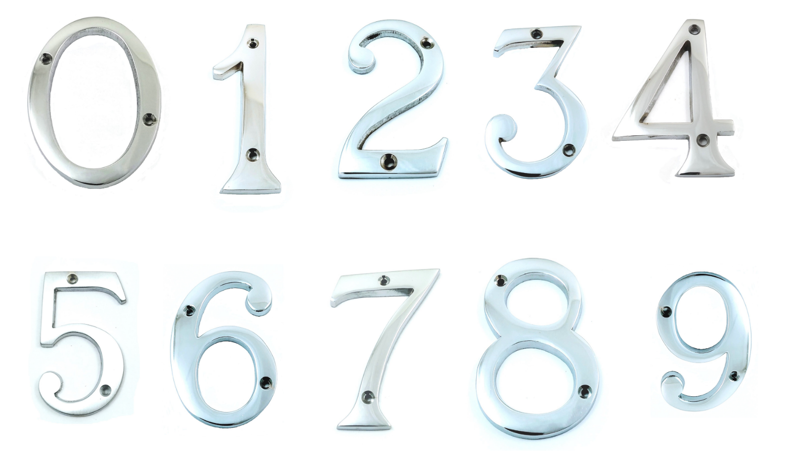 House Door Numerals Numbers – Number 0 to 9 in Polished Nickel Finish 75mm