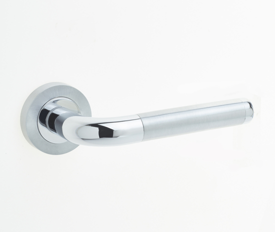 The Twin Lever on Rose Door Handle (JV430PCSC) features a polished and satin chrome dual finish, making it ideal for bathrooms and wet rooms. Crafted from durable zinc, this handle is fire door rated for 30 minutes, ensuring safety and functionality. Sold in pairs.