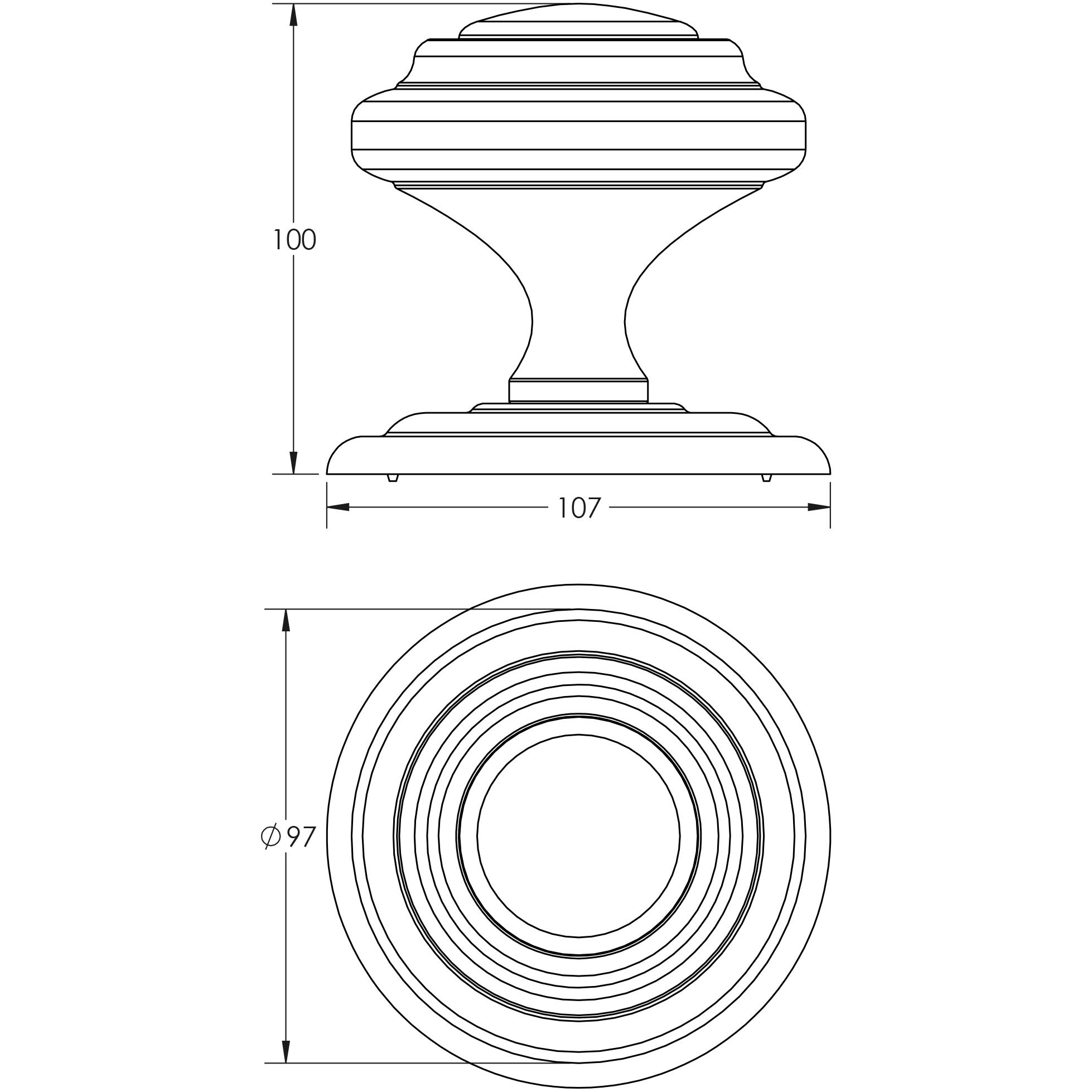 - Design: Classic round centre door knob