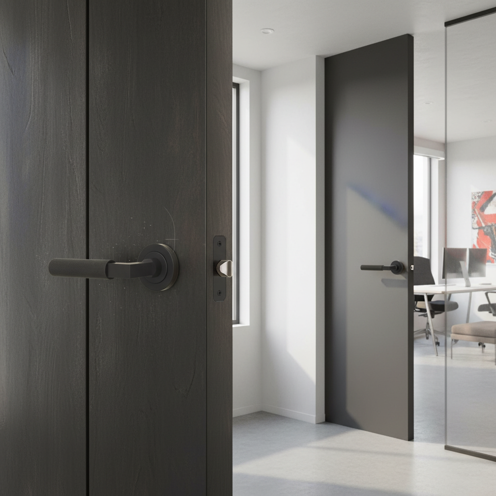VersaLine Tobar Lever Door Handle on Long Rose – Matt Black Decorative Plate – Matt Black