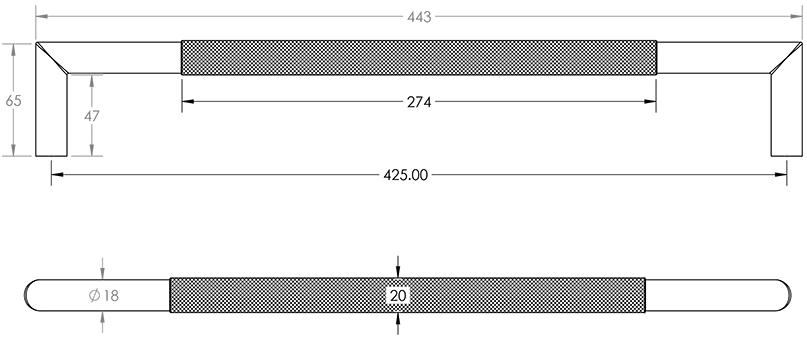 Nero Mitred Knurled Pull handles B/T Fixing