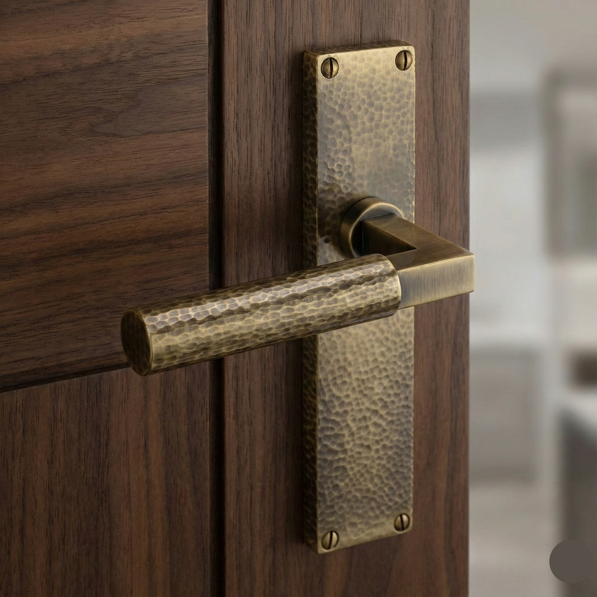 Introduce a touch of artisanal hardware to your interior with The Ruskin. Defined by its distinctive hammered texture and exposed screw detailing, this solid brass lever strikes the perfect balance between rustic charm and modern sophistication.