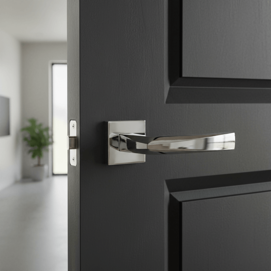 VersaLine Tobar Lever Door Handle on Long Rose – Matt Black Decorative Plate – Matt Black