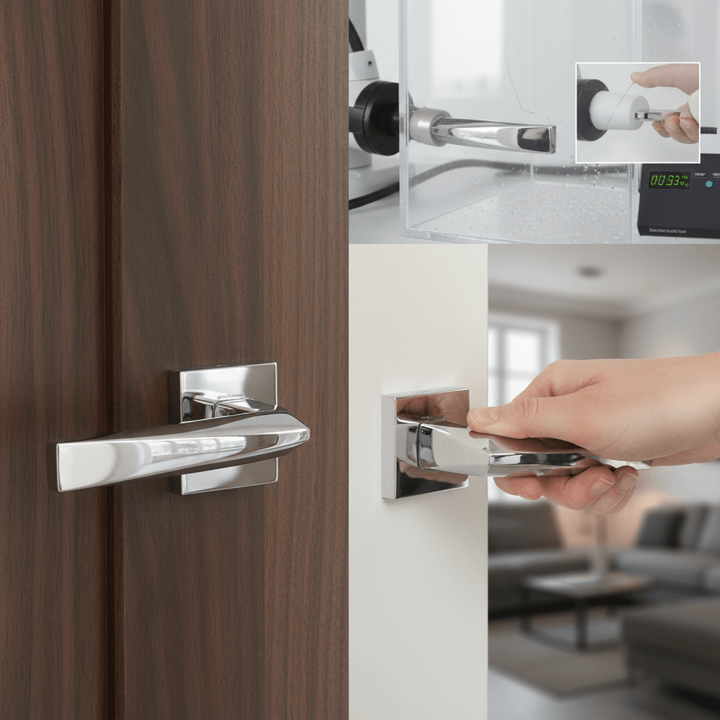 Be the first to review “SPECIAL ORDER FMS268PC Forme Crystal Lever Door Handle on Minimal Square Rose – Polished Chrome” Cancel reply