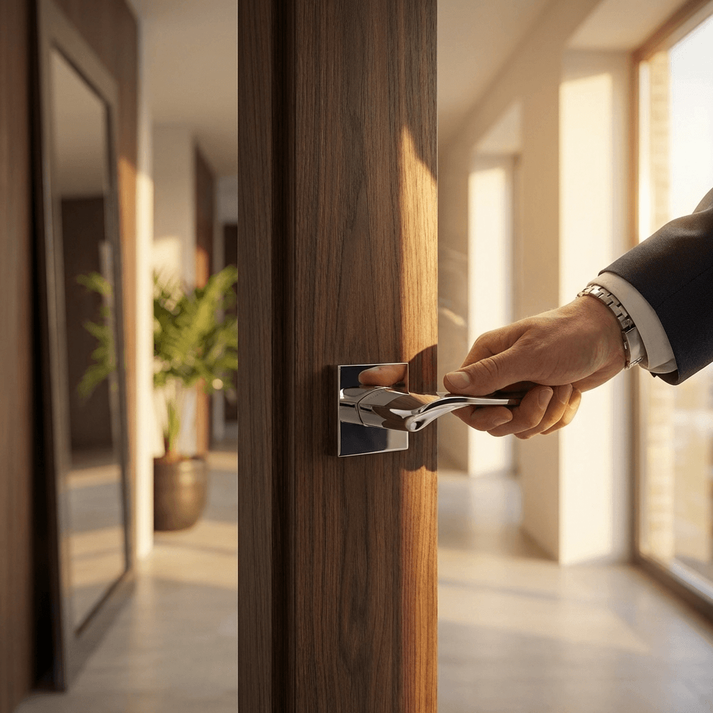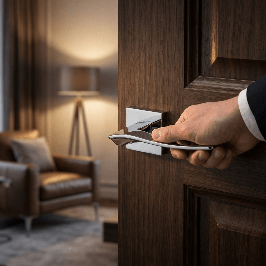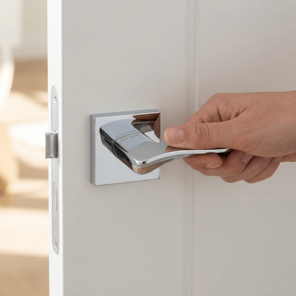 SPECIAL ORDER FMS280PC Forme Olimpia Lever Door Handle on Minimal Square Rose – Polished Chrome
