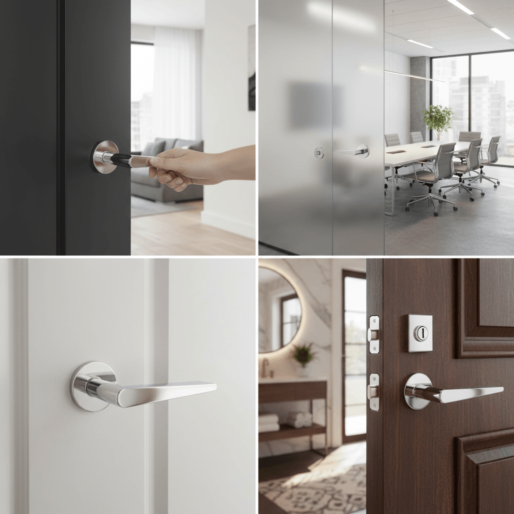 VersaLine Tobar Lever Door Handle on Long Rose – Matt Black Decorative Plate – Matt Black