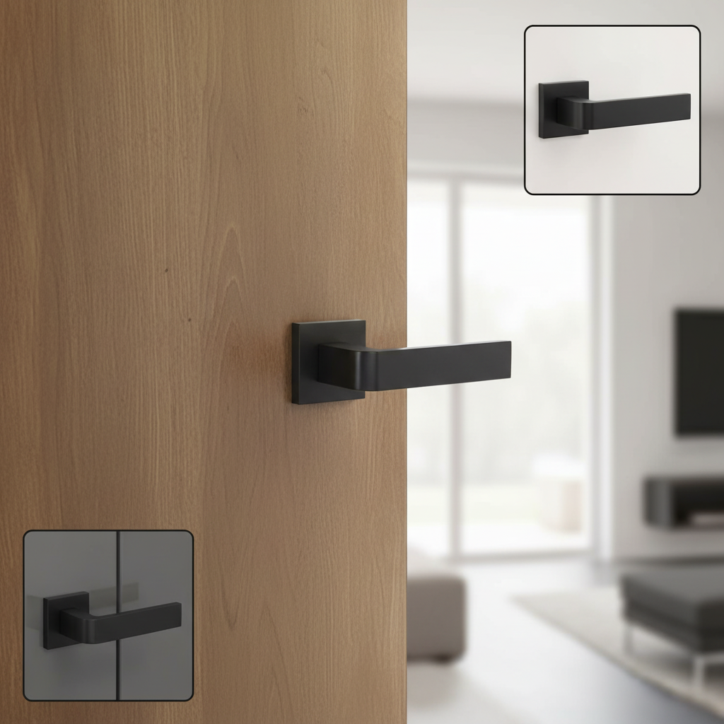 T2732SMB Tupai Rapido CurvaLine Turis Lever Door Handle on Square Rose – Pearl Black