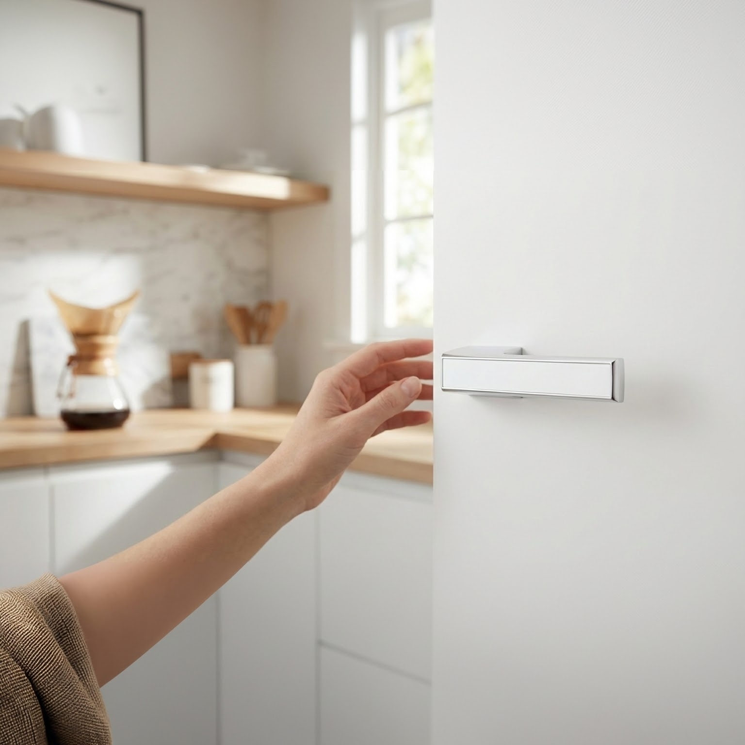 Tupai Rapido VersaLine Tobar Designer Lever on Long Rose – White Decorative Plate – Bright Polished Chrome
