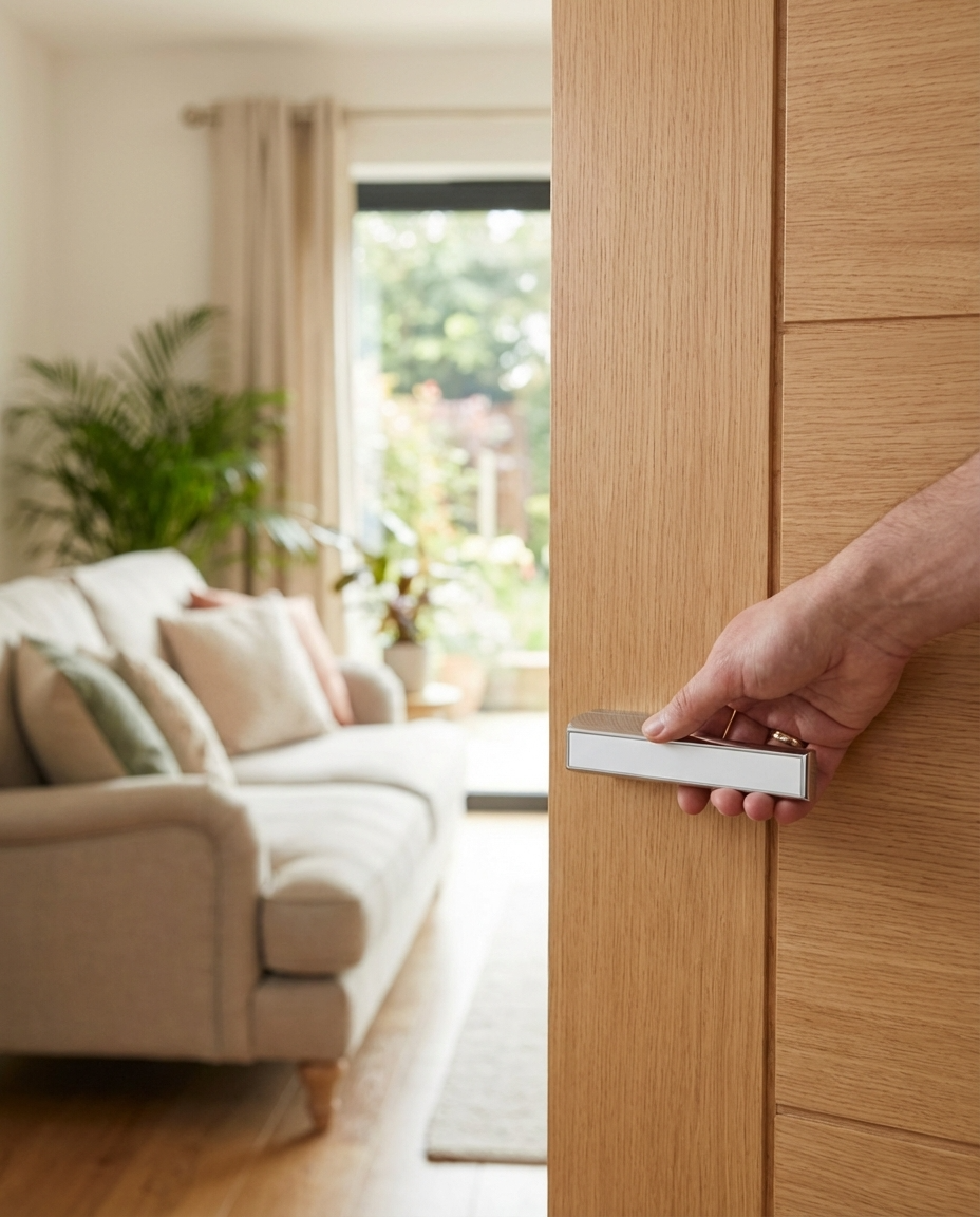 VersaLine Tobar Lever Door Handle on Long Rose – Matt Black Decorative Plate – Matt Black