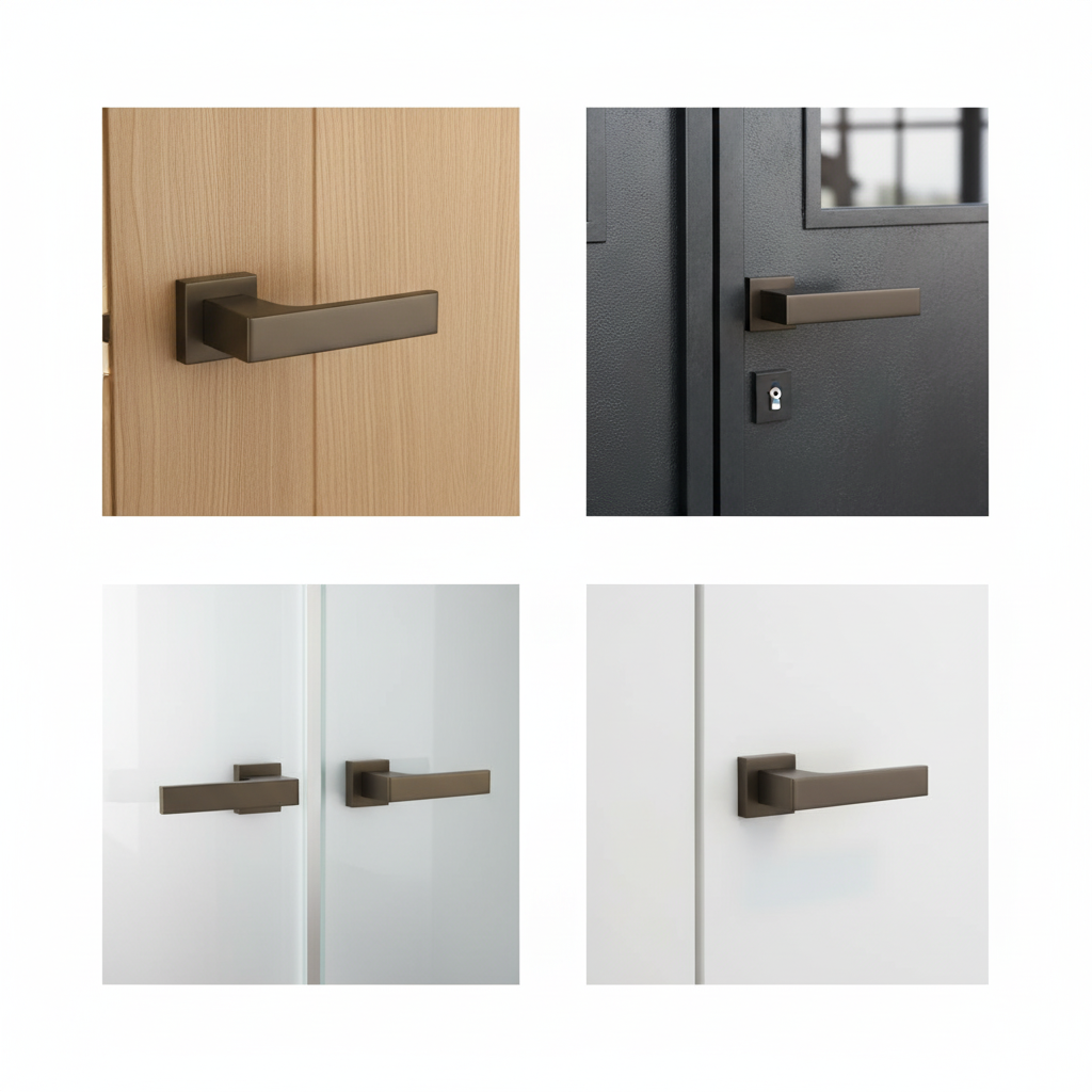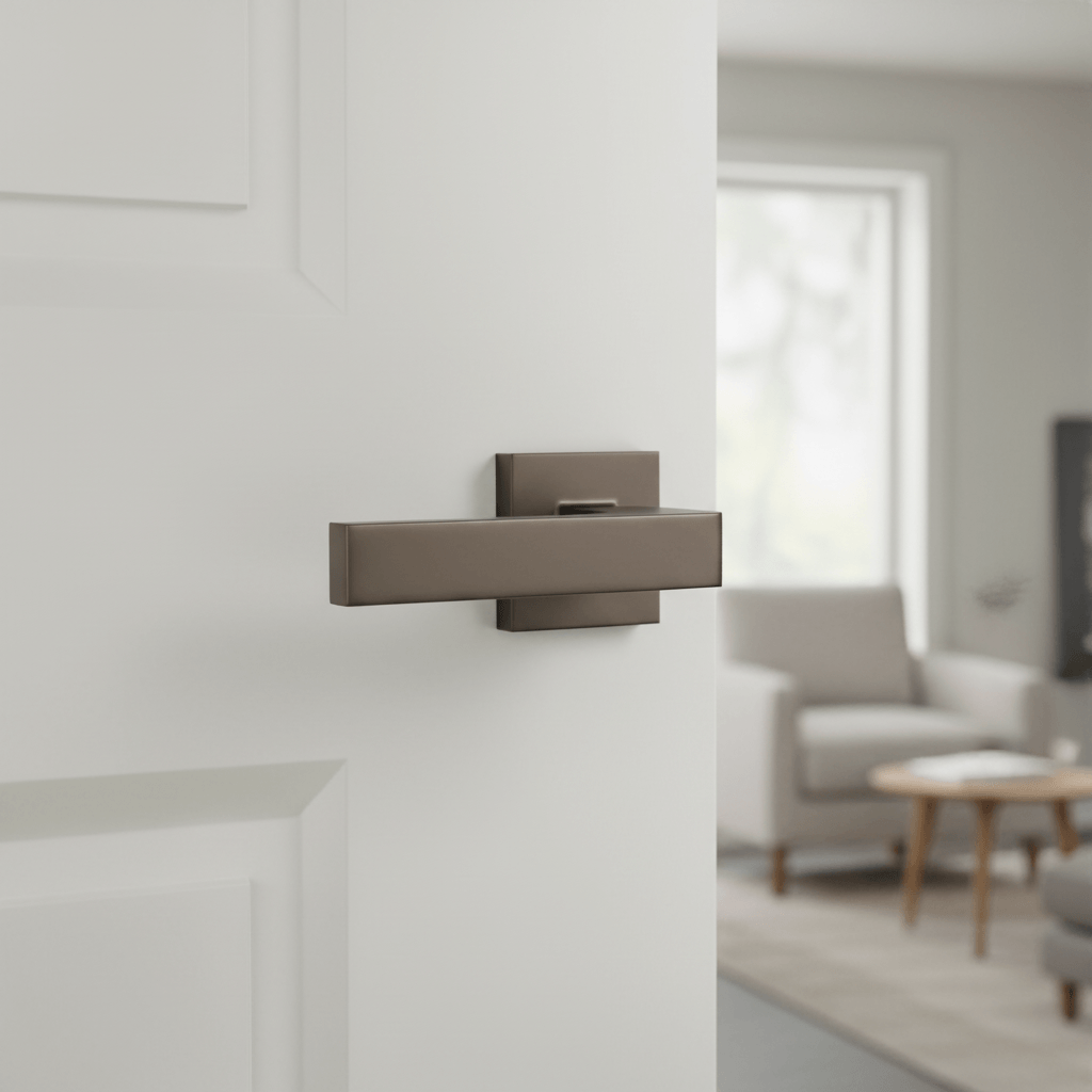 VersaLine Tobar Lever Door Handle on Long Rose – Matt Black Decorative Plate – Matt Black