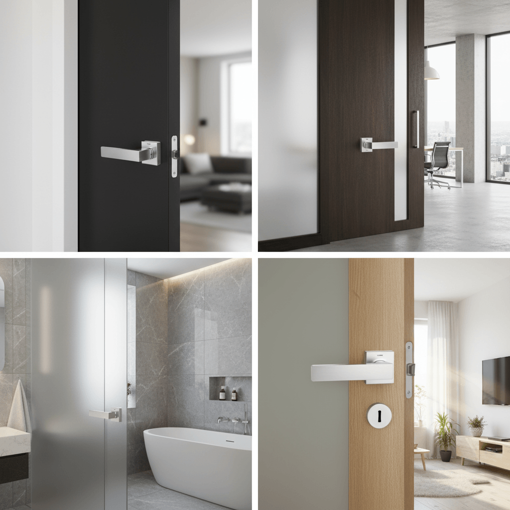 VersaLine Tobar Lever Door Handle on Long Rose – Matt Black Decorative Plate – Matt Black