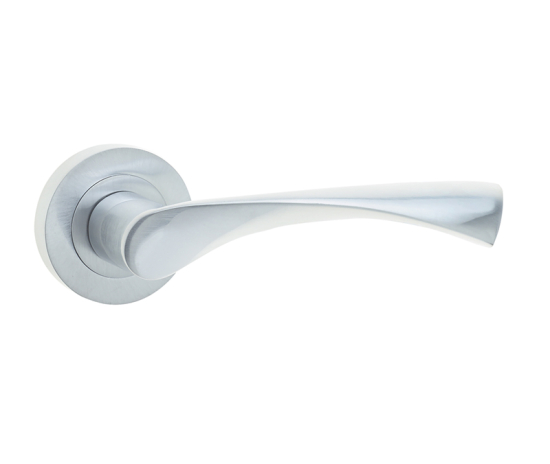 The Twirl Lever on Rose door handle is ideal for retro, art deco, and futuristic room styles. Its twisting lever design serves as a striking feature on any door. Available in five high-quality finishes, this handle adds a unique touch to your interior. Sold in pairs.